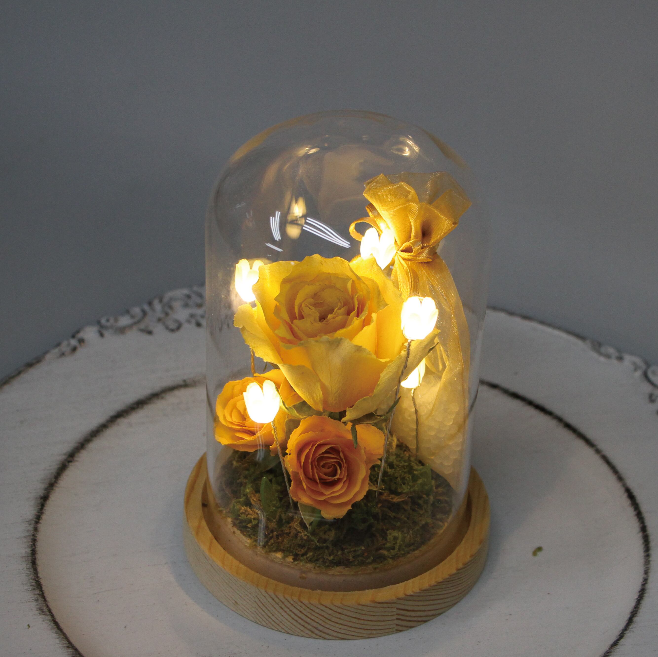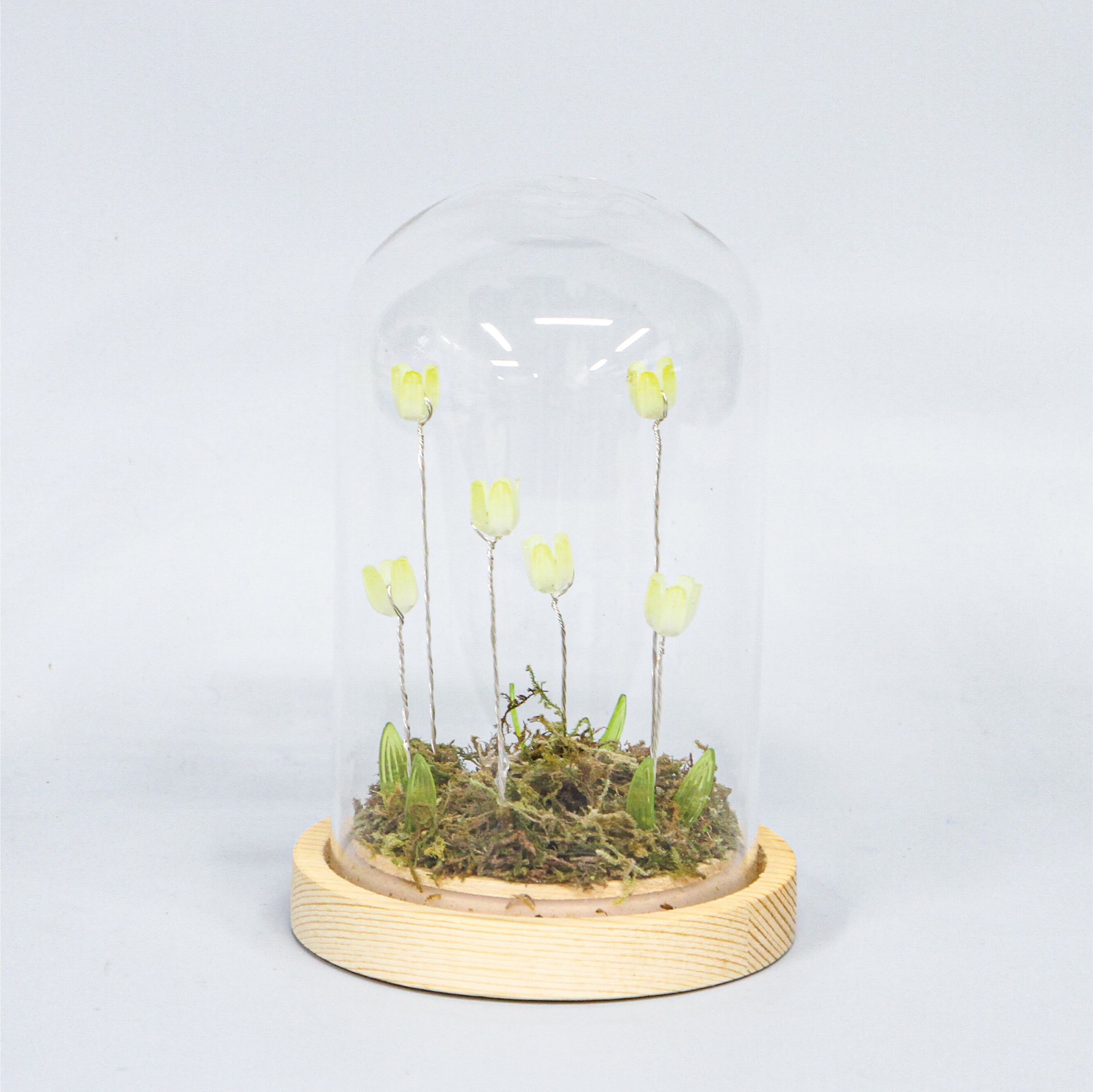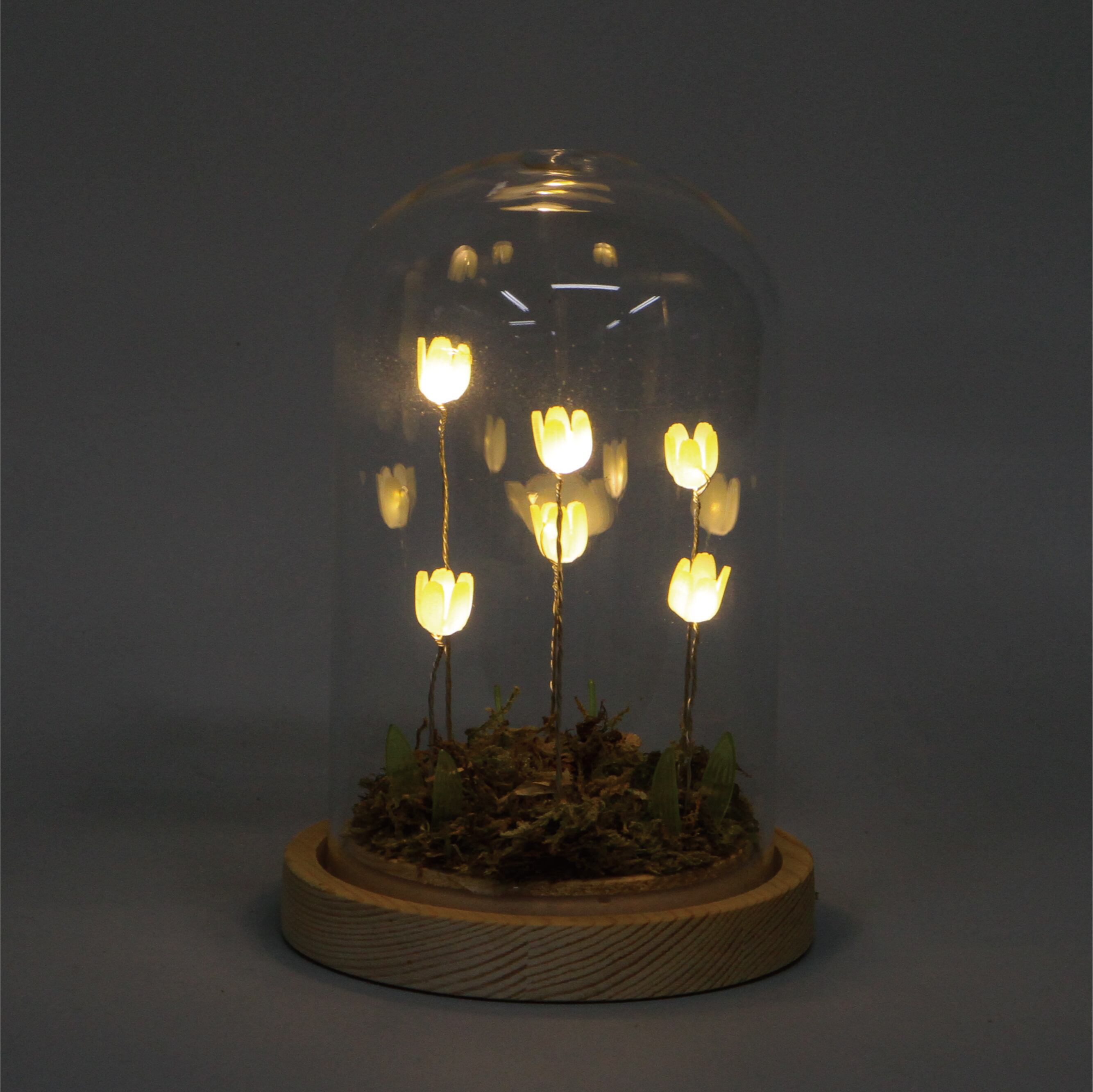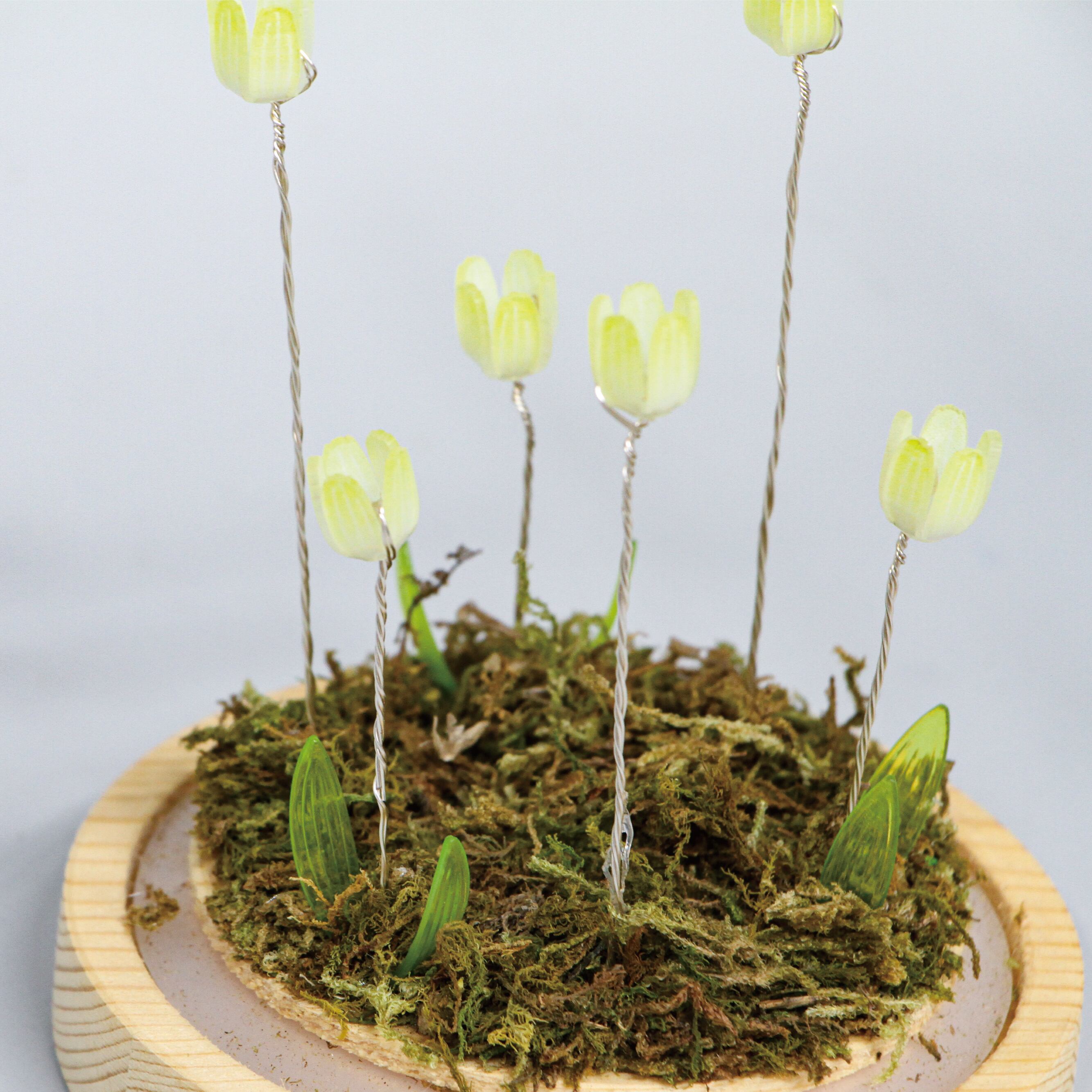 ガラス、パイン材、ワイヤー、樹脂、モス、LED