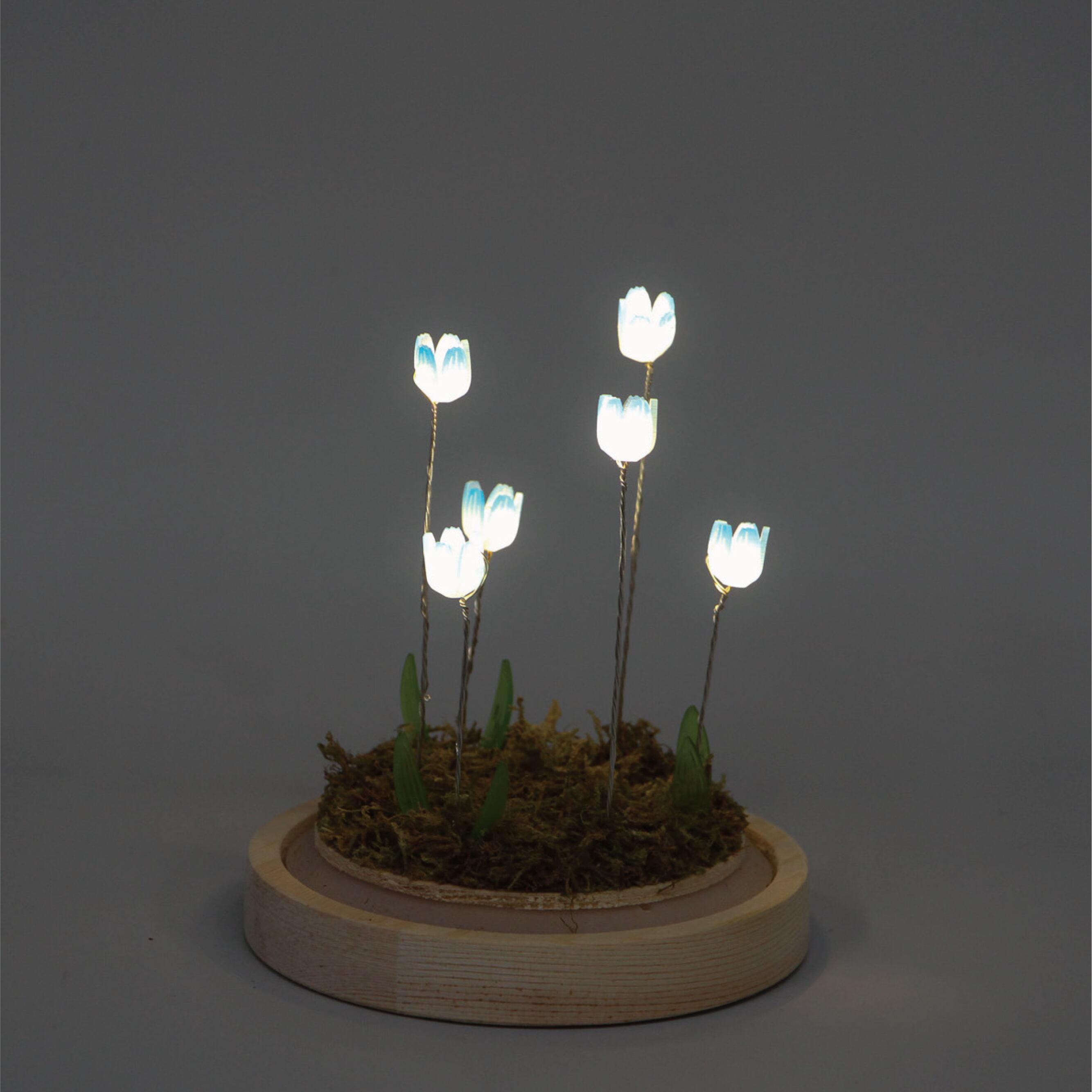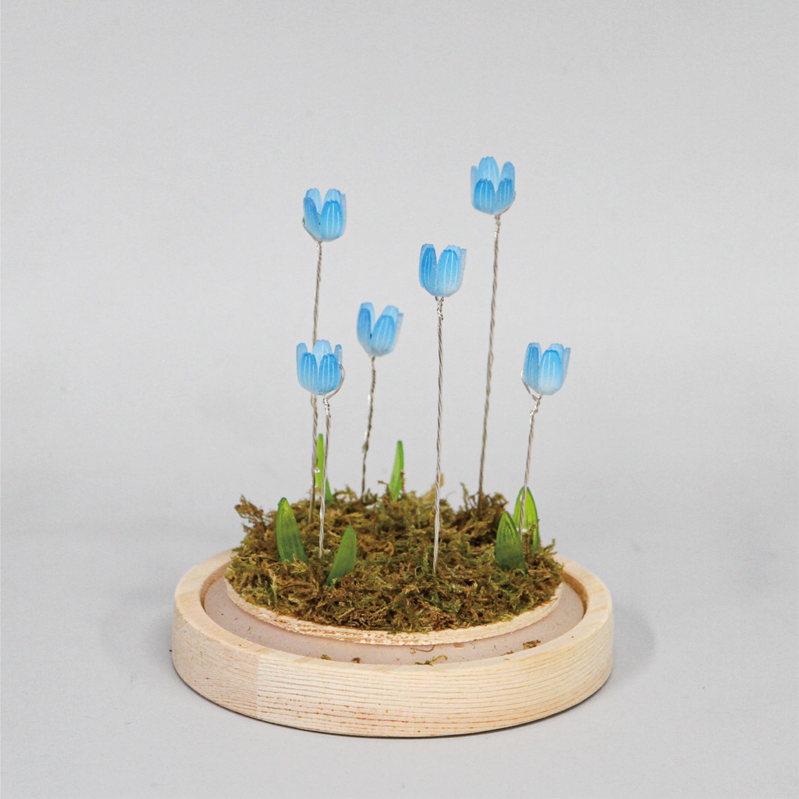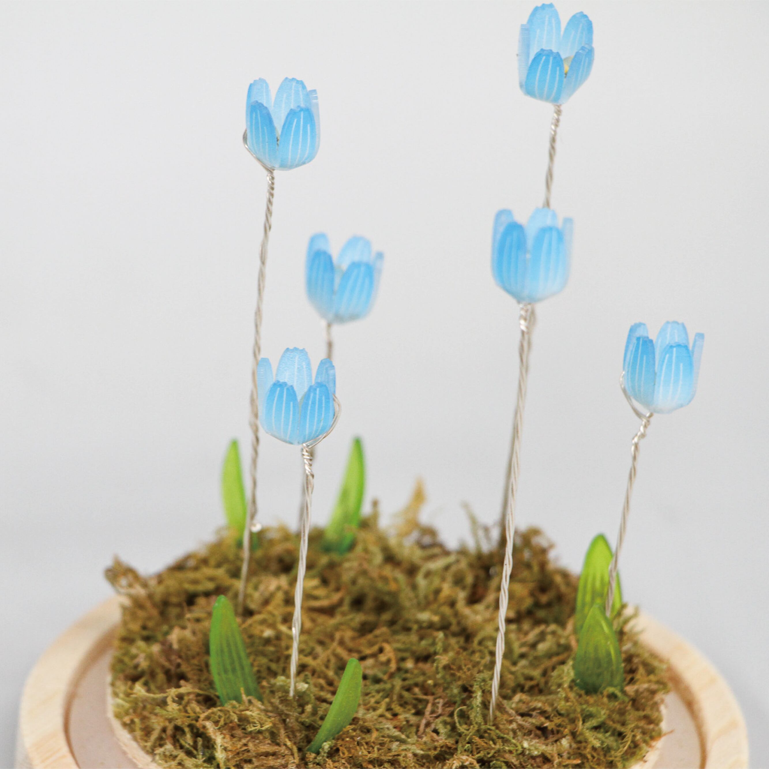 ガラス、パイン材、ワイヤー、樹脂、モス、LED